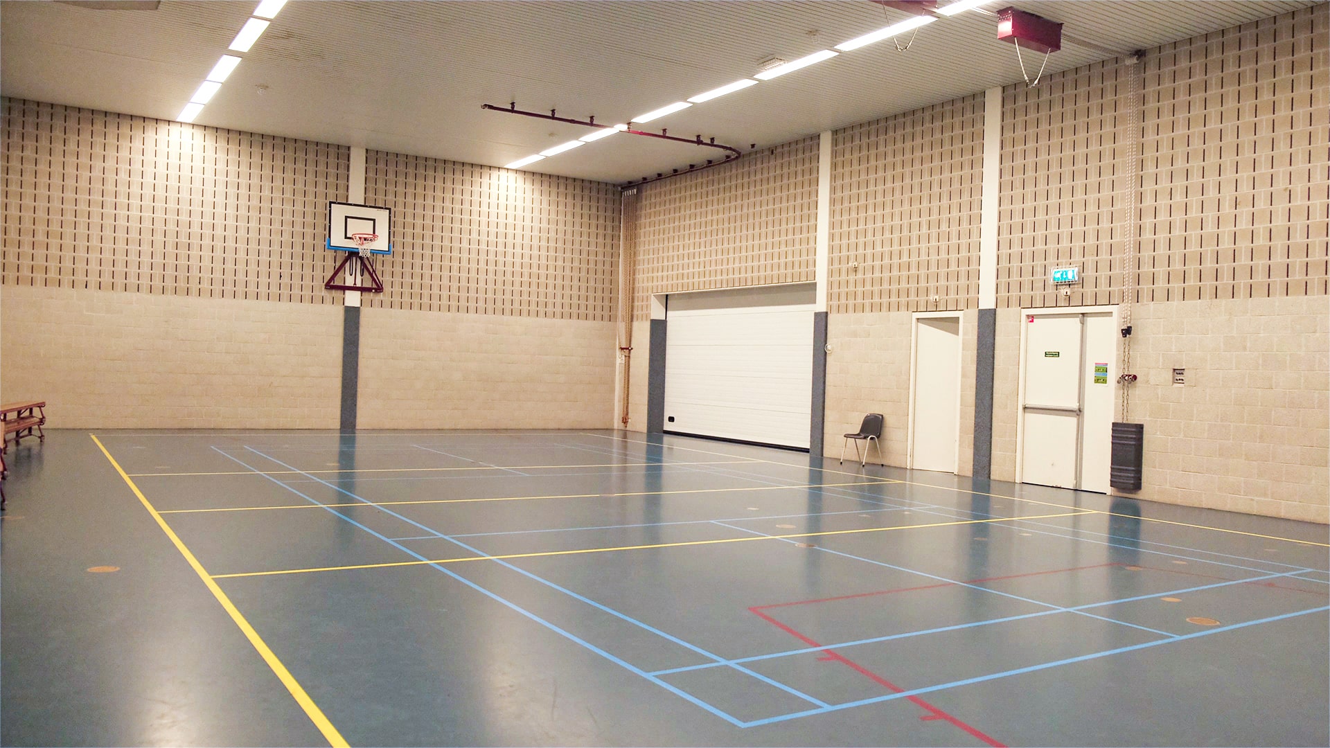 Deze accommodatie bestaat uit een gymzaal inclusief materiaalberging, een docentenkamer en 2 kleedkamers met douches en toiletten.
