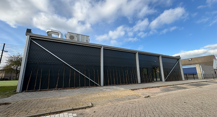 Deze (tijdelijke) accommodatie bestaat uit een gymzaal inclusief materiaalberging, een docentenkamer en 2 kleedkamers en toiletten.