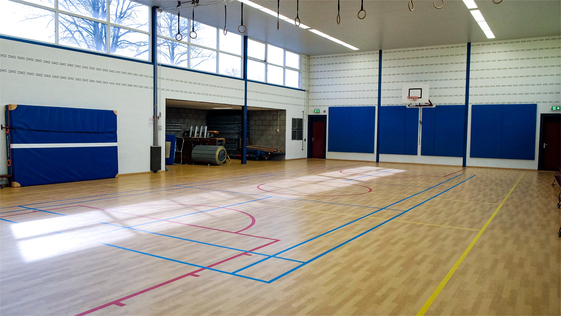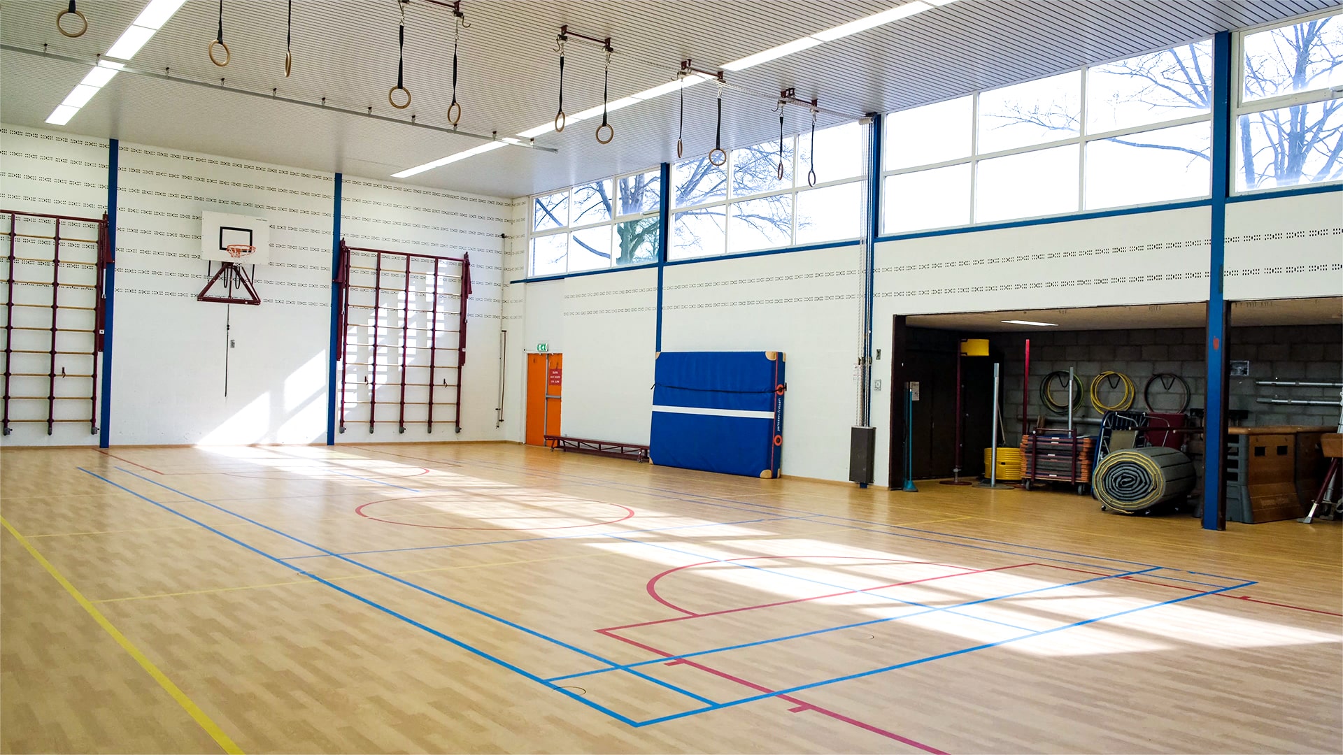 Deze accommodatie bestaat uit een gymzaal inclusief materiaalberging, een docentenkamer en 2 kleedkamers met douches en toiletten.